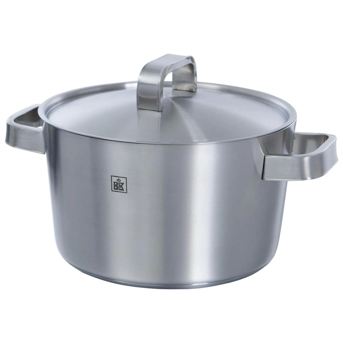 De populaire BK Conical+ Pannenset – 7-delig combineert trendy design met gebruiksgemak. De geborstelde roestvrij edelstalen panbody loopt conisch uit naar boven toe en wordt bekroond door een paar stevige grepen. De BK Conical+ is voorzien van een sandwichbodem die zorgt voor een snelle opwarming en goede warmteverdeling door de hele pan. De BK Conical+ is geschikt voor alle warmtebronnen, inclusief de oven.