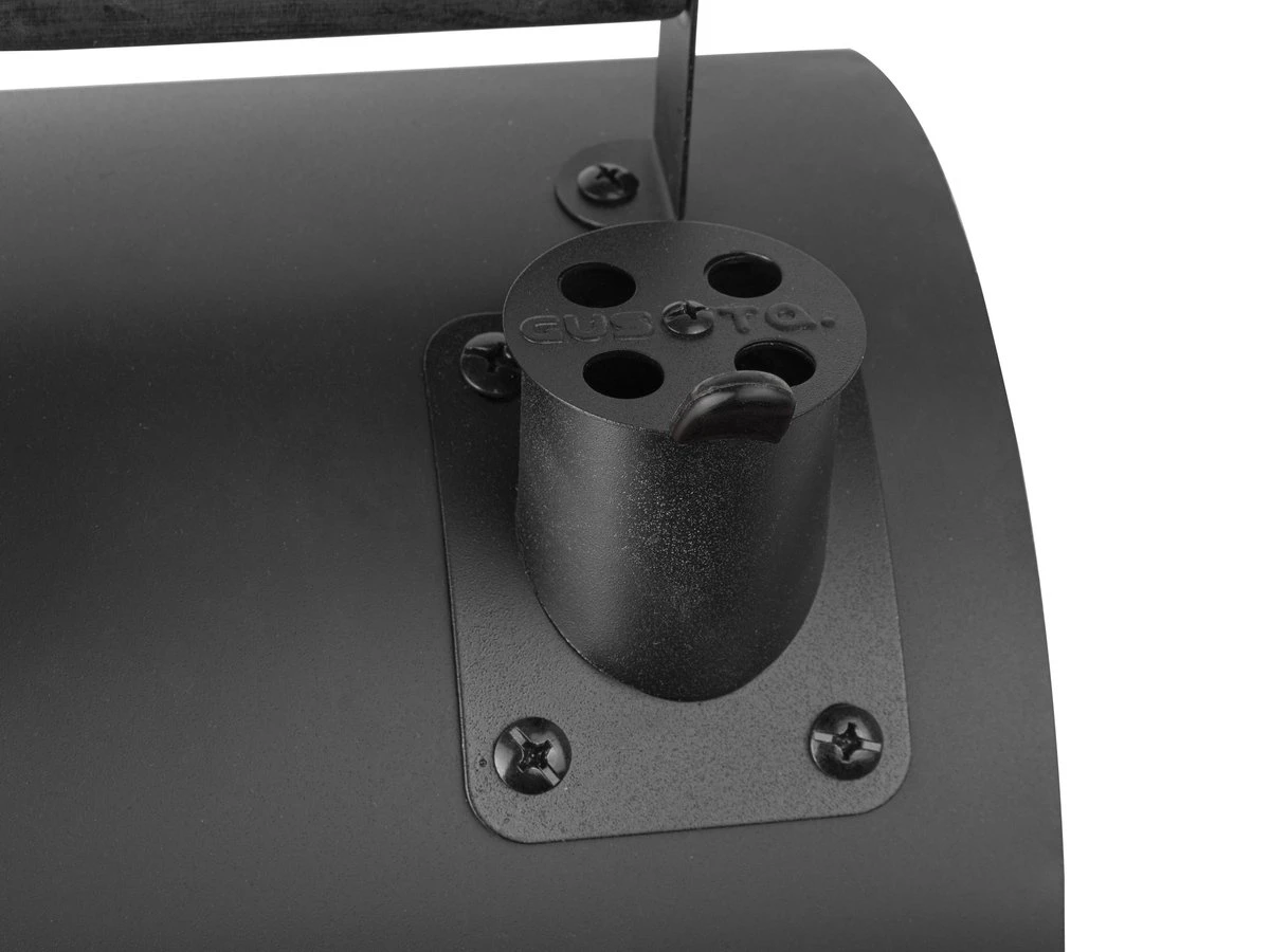 GUSTA BBQ KING. Traditionele BBQ en Smoker in één. Compact model, ideaal voor op terras / balkon en camping. Vlees en vis een hele dag op een lage temperatuur laten garen en het een verfijnde rooksmaak meegeven is dé trend. Deze rookoven barbecue is te gebruiken als normale kolen bbq en rook bbq door de verschillende compartimenten binnen in de bbq. De Gusta Smoker BBQ beschikt over een handig extra rekje op de bodem van de BBQ, welke gebruikt kan worden als houtskool/briket starter. De bbq is voorzien van verschillende instelbare lucht toevoeren evenals een thermometer. Lekker een groot stuk vlees een hele dag laten garen op je BBQ en ‘s avonds de vuurkorf aan, met een glas glühwein genieten van een heerlijk stuk rib roast of pulled pork. Daar word je warm van. Naast het feit dat hij rookt is het ook een leuk klein grilletje. Je kan er zo 10 tot 15 sateetjes op kwijt. Of 2 hamburgers en broodjes. Rough & Authentic!