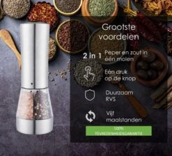 MD-Goods ® Elektrische Peper En Zoutmolen Set – Pepermolen – RVS – Cadeau – Restaurant Kwaliteit